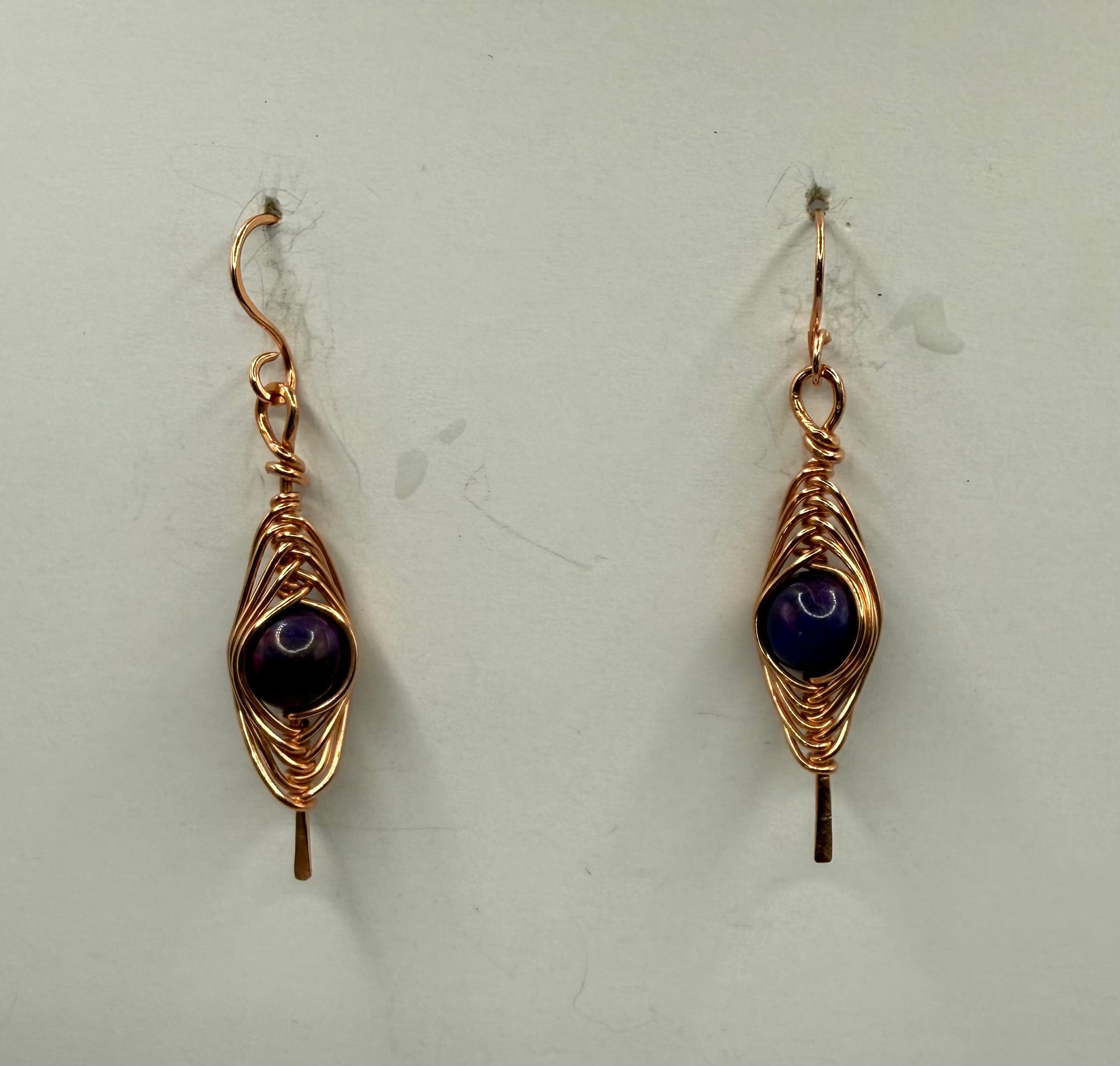 Herringbone pattern, copper wire wrap earrings.